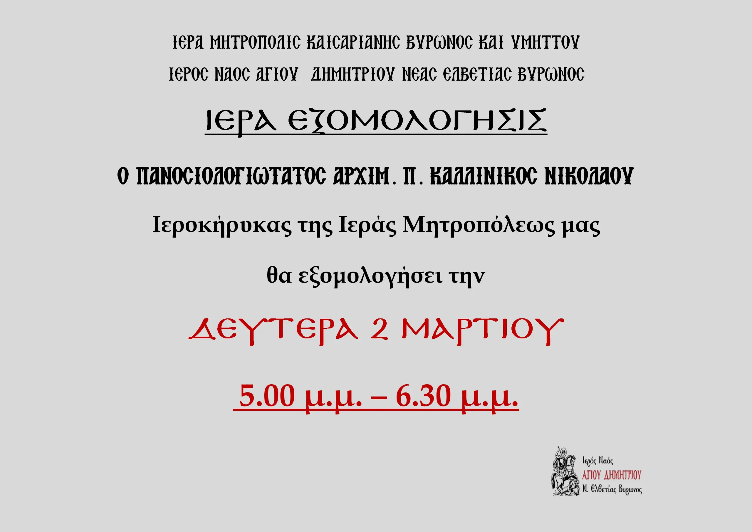Ανακοίνωση Ιεράς Εξομολόγησις Ανακοίνωση Ιεράς Εξομολόγησις3Εξομολόγηση26 Φεβρουαρίου, 2026Ανακοίνωση Ιεράς Εξομολόγησις3Εξομολόγηση26 Φεβρουαρίου, 20263Εξομολόγηση26 Φεβρουαρίου, 2026