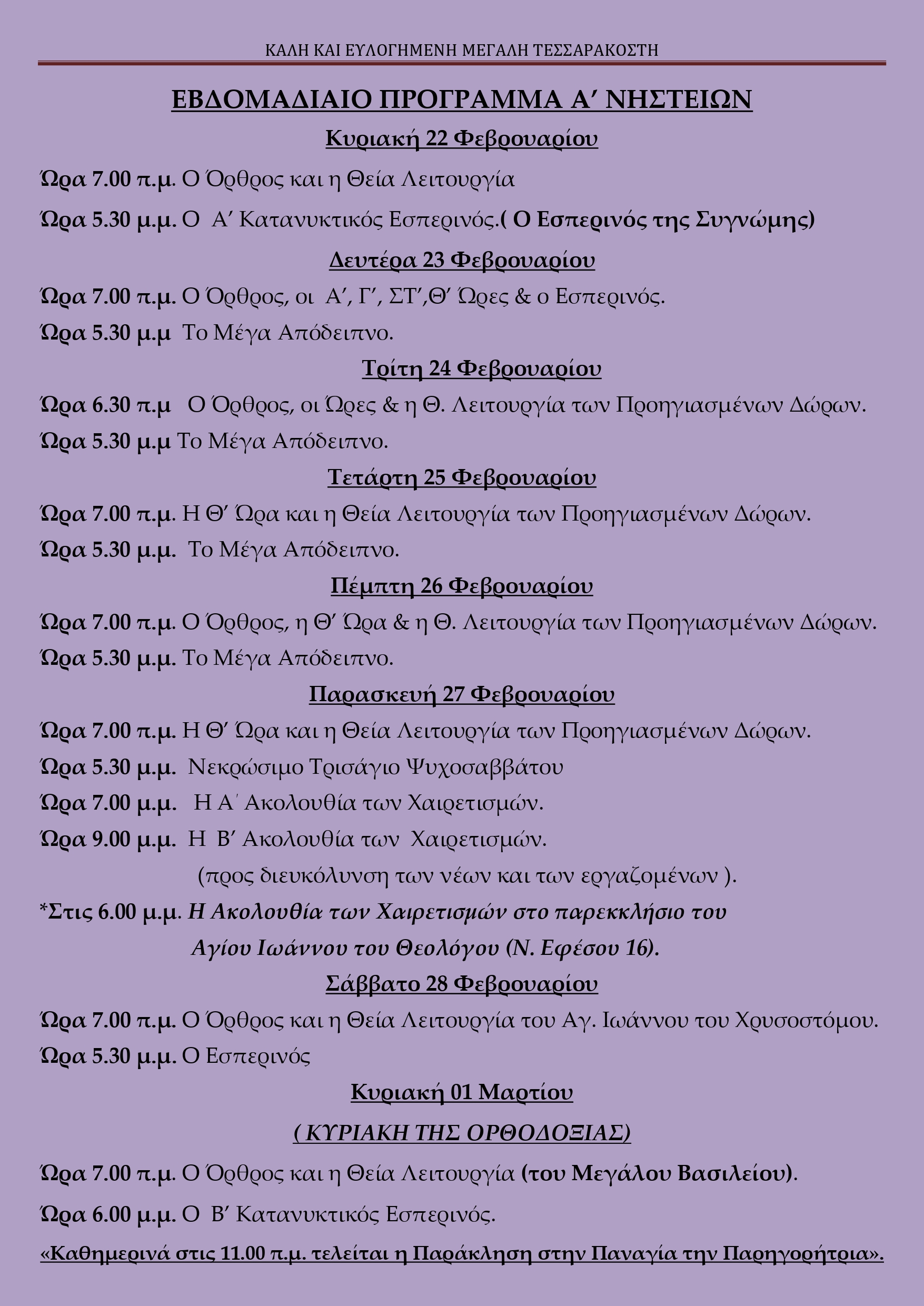 Πρόγραμμα Ιερών Ακολουθιών Α’ Εβδομάδος Νηστειών. Πρόγραμμα Ιερών Ακολουθιών Α’ Εβδομάδος Νηστειών.ΠΡΟΓΡΑΜΜΑ ΙΕΡΩΝ ΑΚΟΛΟΥΘΙΩΝ#ΠΡΟΓΡΑΜΜΑ ΑΚΟΛΟΥΘΙΩΝ24 Φεβρουαρίου, 2026Πρόγραμμα Ιερών Ακολουθιών Α’ Εβδομάδος Νηστειών.ΠΡΟΓΡΑΜΜΑ ΙΕΡΩΝ ΑΚΟΛΟΥΘΙΩΝ#ΠΡΟΓΡΑΜΜΑ ΑΚΟΛΟΥΘΙΩΝ24 Φεβρουαρίου, 2026ΠΡΟΓΡΑΜΜΑ ΙΕΡΩΝ ΑΚΟΛΟΥΘΙΩΝ#ΠΡΟΓΡΑΜΜΑ ΑΚΟΛΟΥΘΙΩΝ24 Φεβρουαρίου, 2026